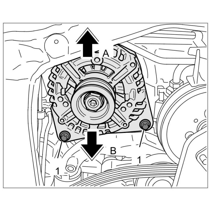 4.4. Lift the generator up over the holder -arrow A- and remove it by pulling it forward -arrow B- until the electric plug connections can be reached easily.