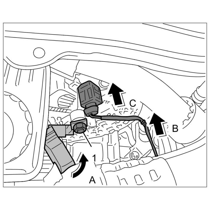 5.2. Unclip the line from the generator at the retaining clip -arrow C-.