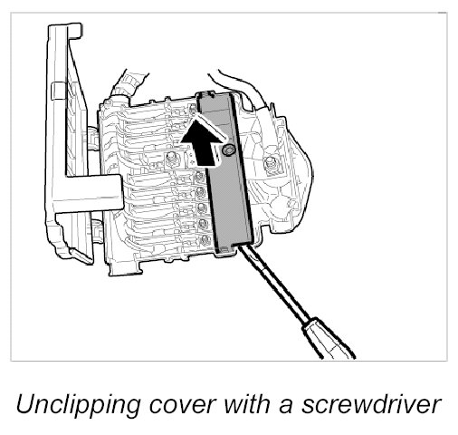 1. Unclip the cover for the fuse elements with a screwdriver.