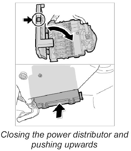 5. Close the power distributor until the lid is felt to engage and seal with the red seal label.