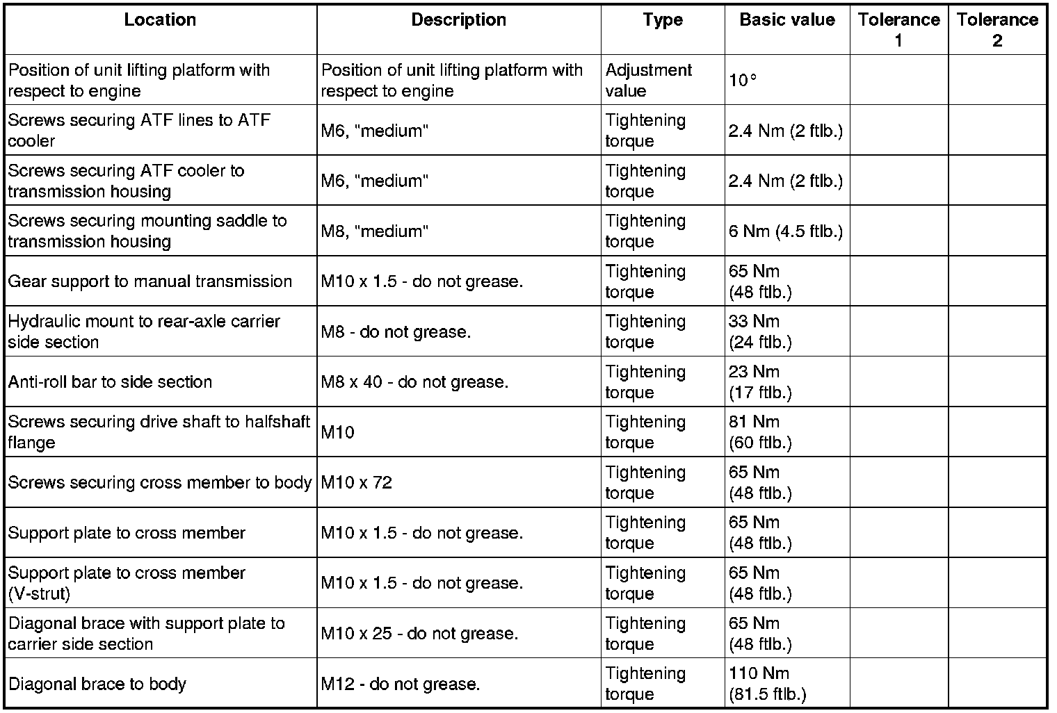 => Tightening torque: 81 Nm (60 ftlb.)