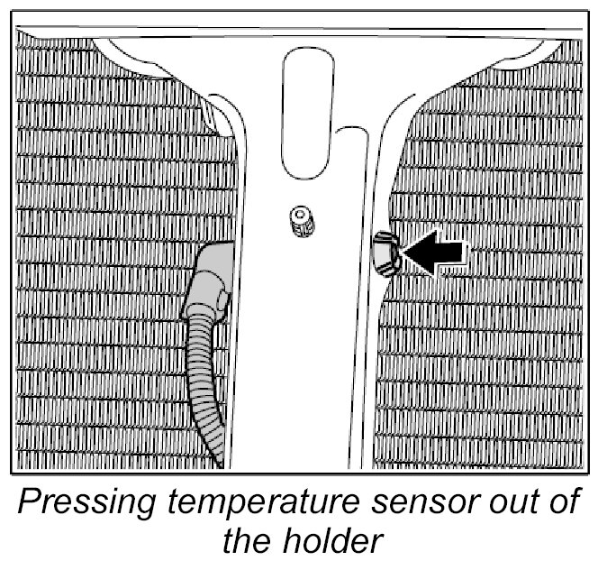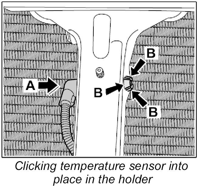 2. Push in temperature sensor -A- until you feel the locking tabs -Arrows B- engage.
