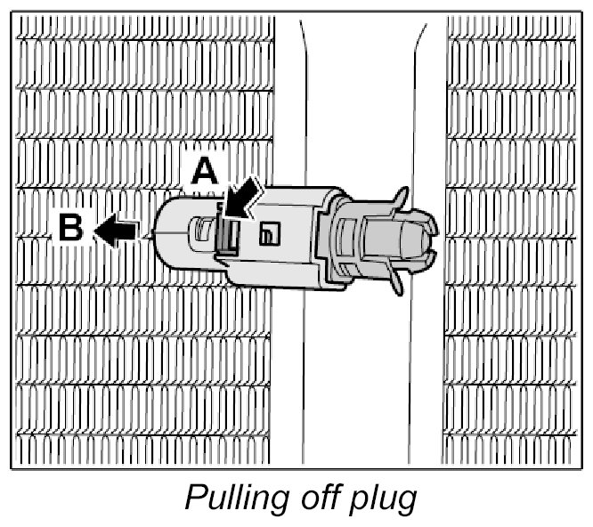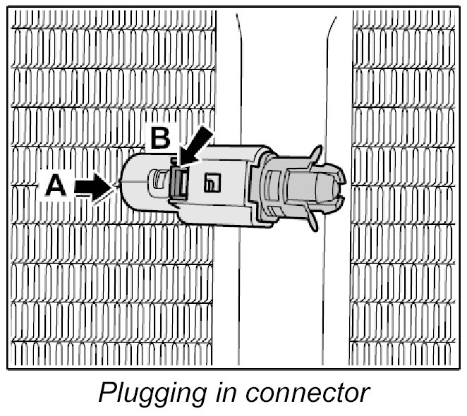 1. Plug in the temperature sensor connector -Arrow A- until the locking tab -B- is felt to engage.