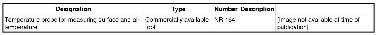 1.1. Switch on temperature probe and position both temperature sensors. Insert the first temperature sensor centred in the right centre nozzle approximately 4 cm deep, and position the second temperature sensor on the air inlet in the footwell on the passenger's side. Temperature probe for measuring surface and air temperature NR.164