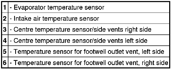 - Vehicles with manual air conditioner only have the evaporator temperature sensor -1- installed.