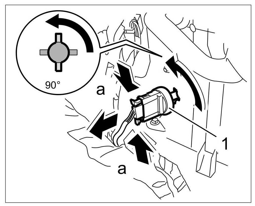 1. Turn temperature sensor by 90° and pull it out of the heater housing.