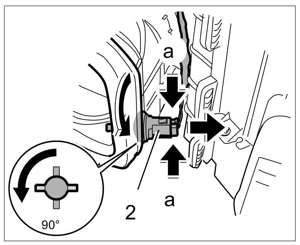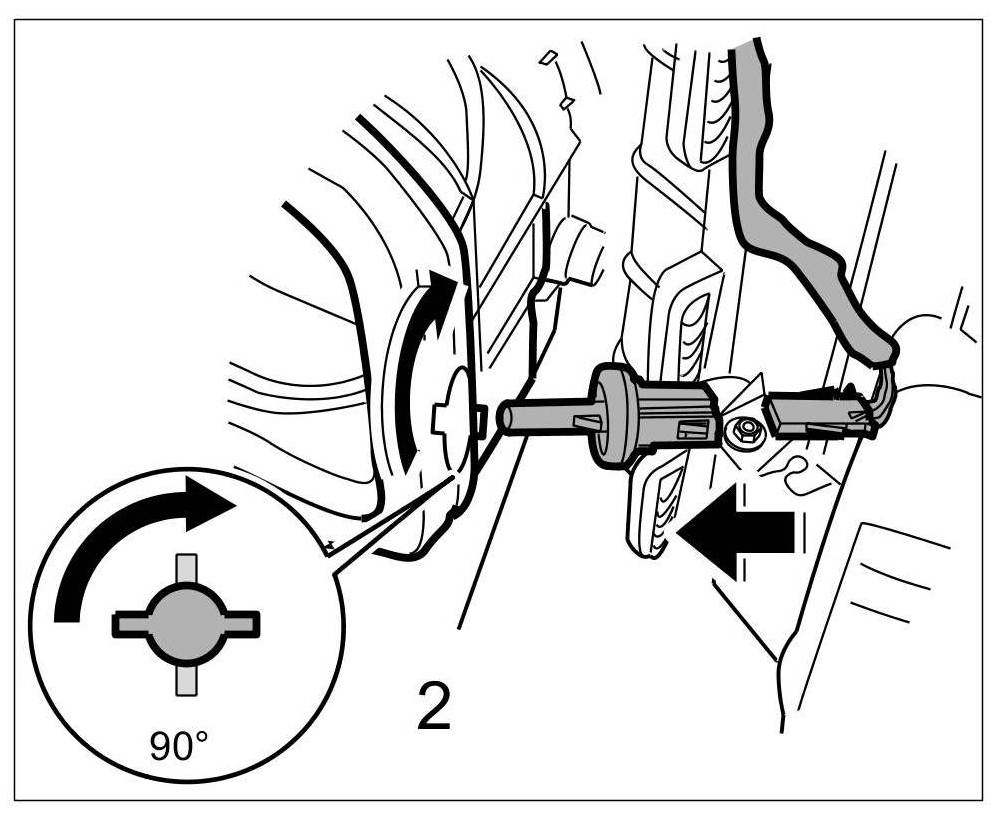 2. Slide in the temperature sensor -2- into the heating/air-conditioning unit and turn 90°.