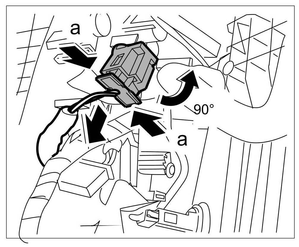 2. Press latch on connector -arrows a- and pull off connector from the temperature sensor.