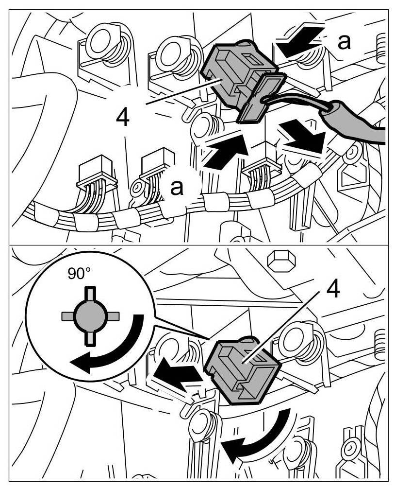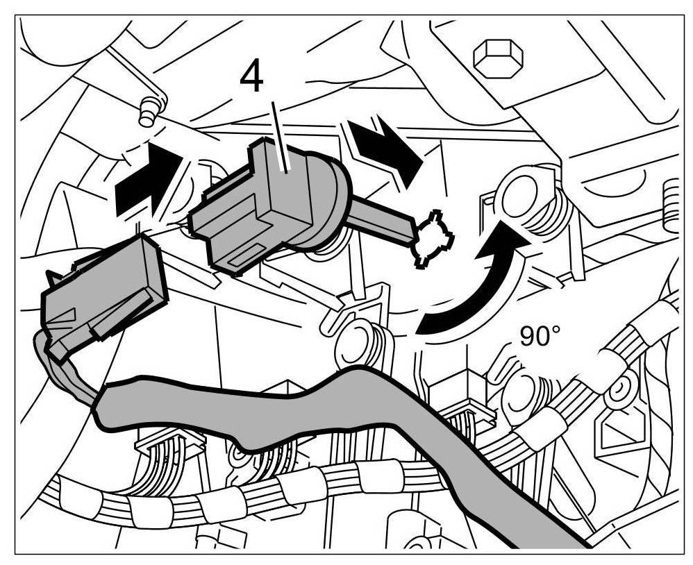 1. Press latch on the electric connector for the sensor -4- -arrows a- and pull off the connector.