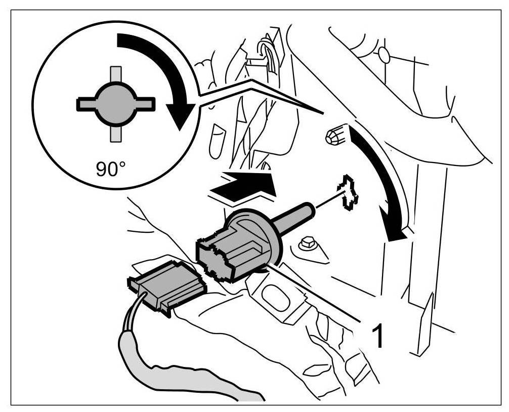 2. Slide in the temperature sensor -1- into the heating/air-conditioning unit and turn 90°.