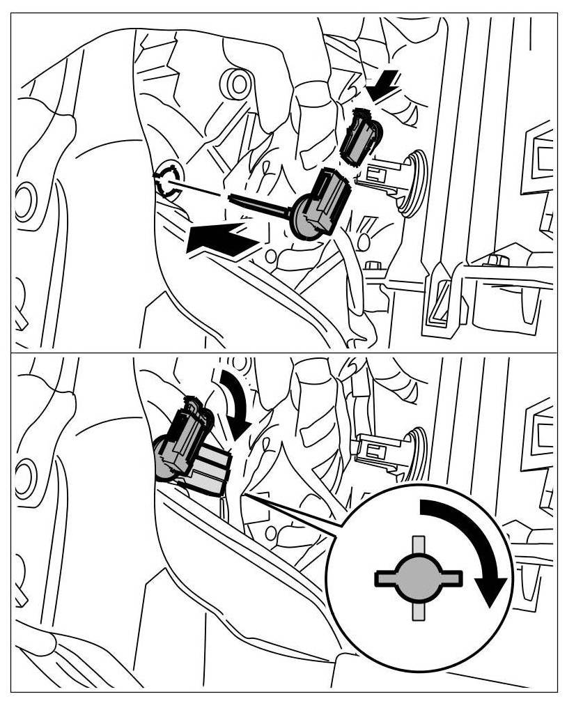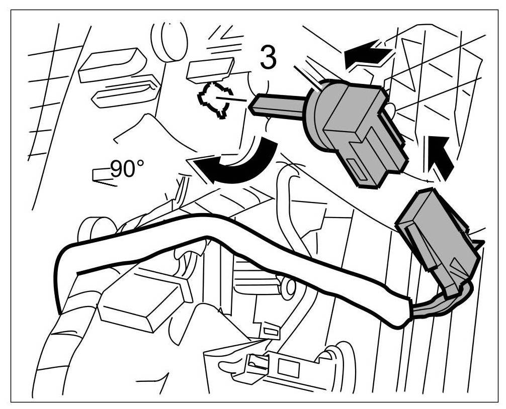 2. Slide in the temperature sensor -3- into the heating/air-conditioning unit and turn 90°.