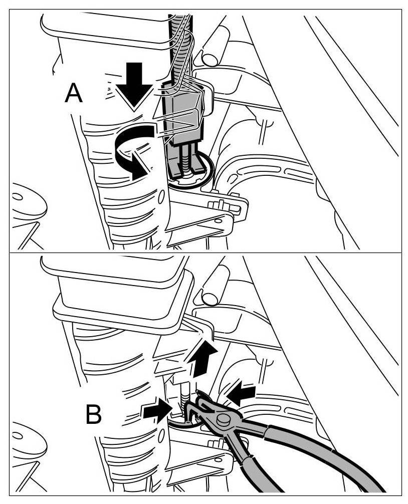 3. -A- Using a slide hammer kit NR.168 , push plug down and turn Seeger ring until accessible from air filter.
