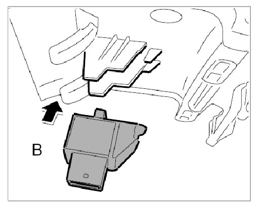 1. Press sensor -B- into the holder until the sensor lugs engage.