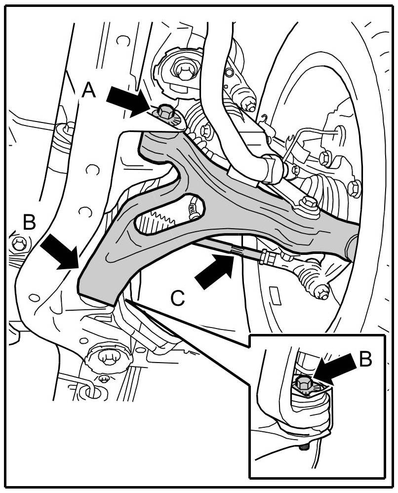 Specified tightening torque for lock nut at the toe eccentric -B- = 180 Nm (133 ftlb.).