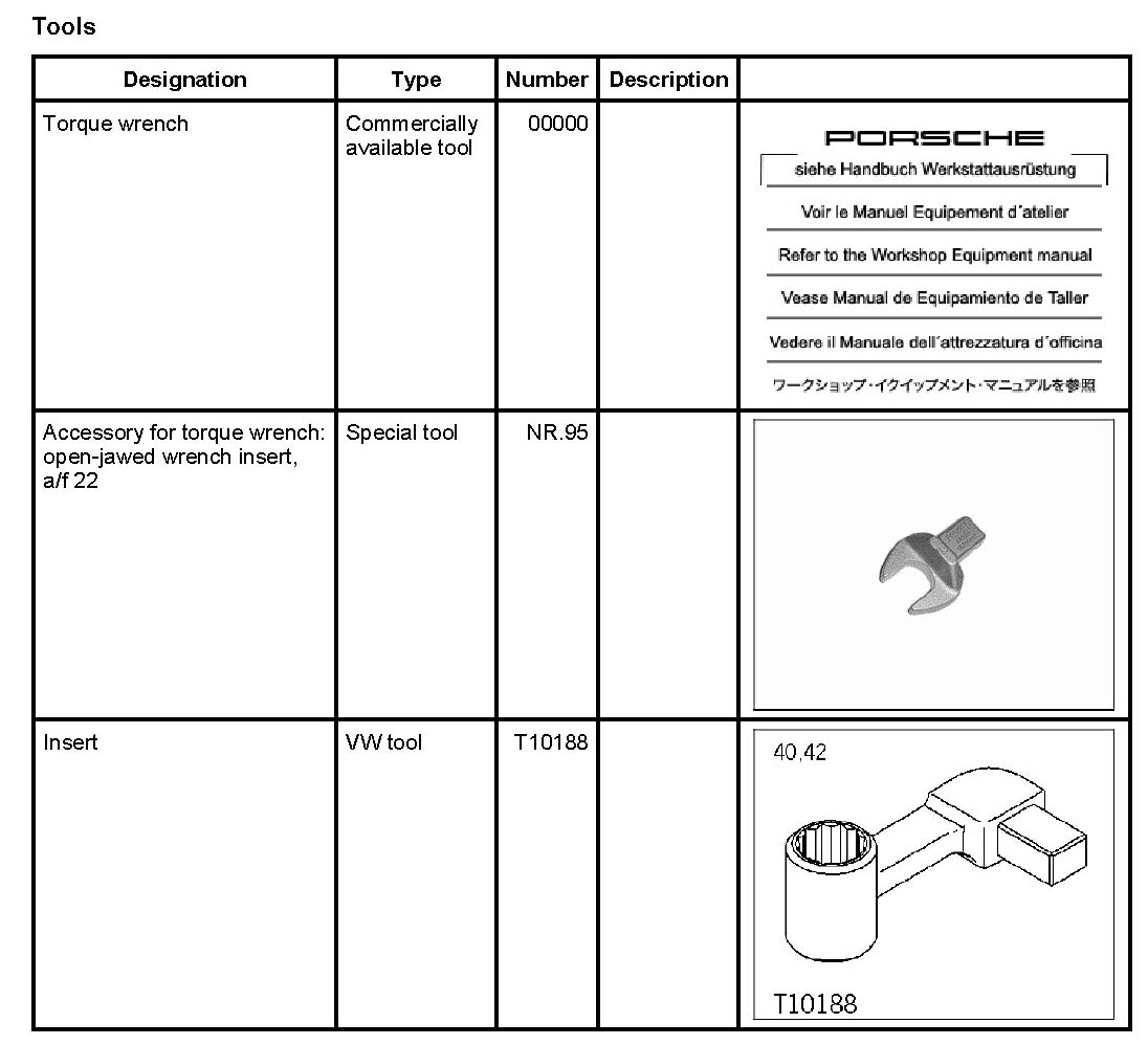 - - Torque wrench 00000 covering the range between 70 Nm (52 ftlb.) and 188 Nm (133 ftlb.).
