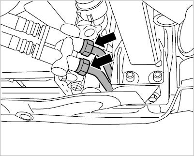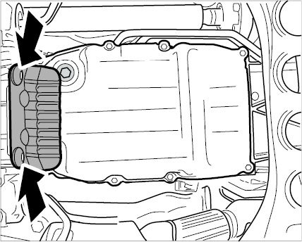 1. Remove cover of ATF pan. To do this, loosen the two fastening screws -arrows-.