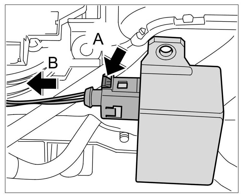 13. Insert fuse carrier -Arrow A- until locking tabs -B- are felt to engage.