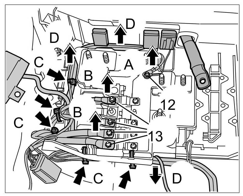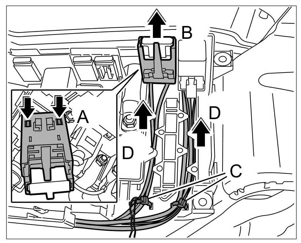 26. Release fuse carrier -Arrow B- and remove it from brackets -Arrows C-.