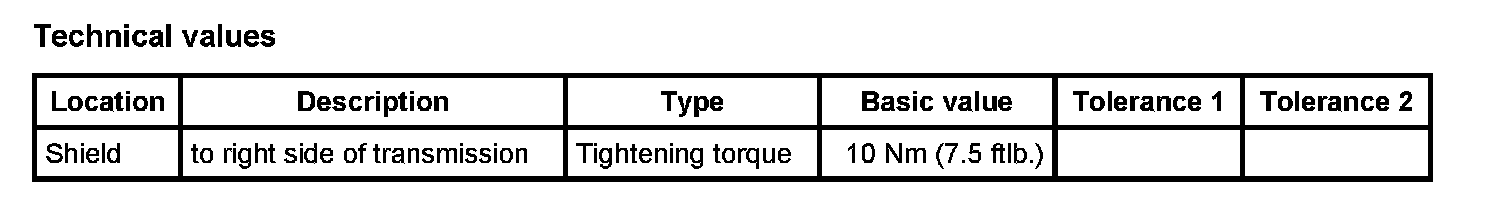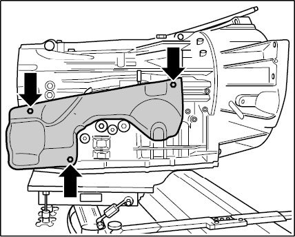 4. Install shield on the transmission. To do this, screw in three fastening screws -Arrow-. - Tightening torque: 10 Nm (7.5 ftlb.)