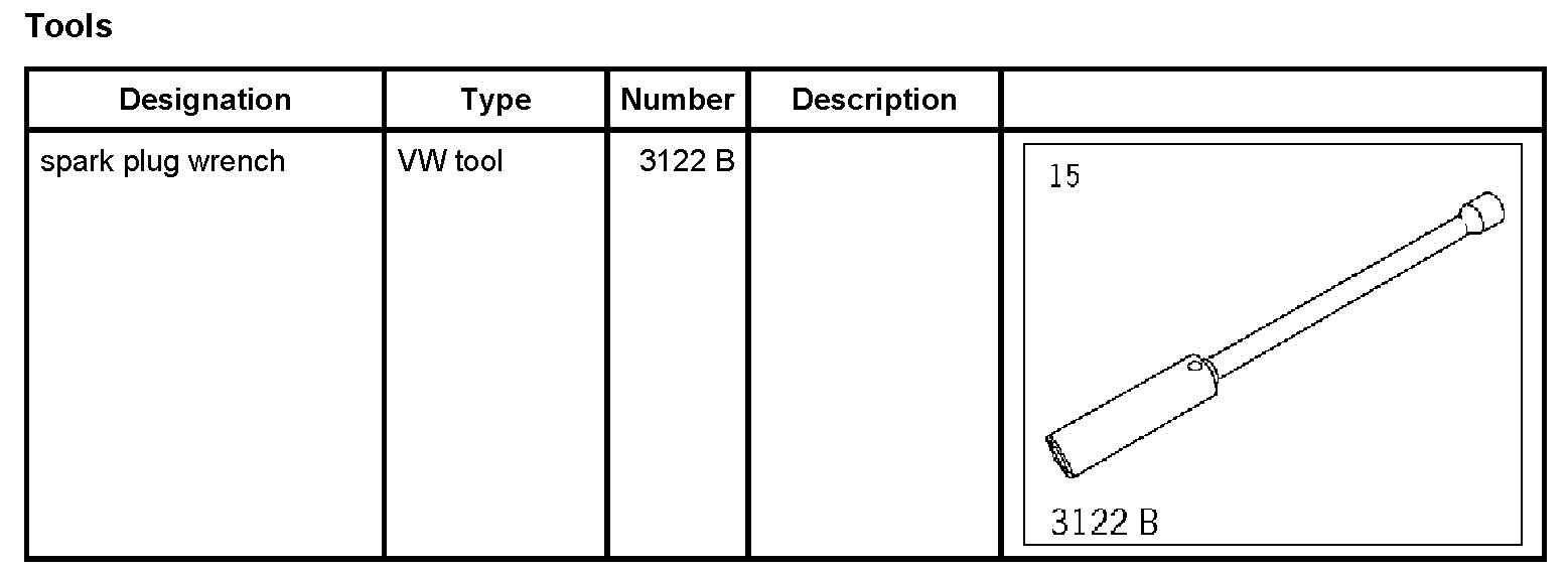 2. Tighten spark plugs using special tool spark plug wrench 3122 B. - Tightening torque: 20 Nm (15 ftlb.) - Tightening spark plugs using spark plug wrench