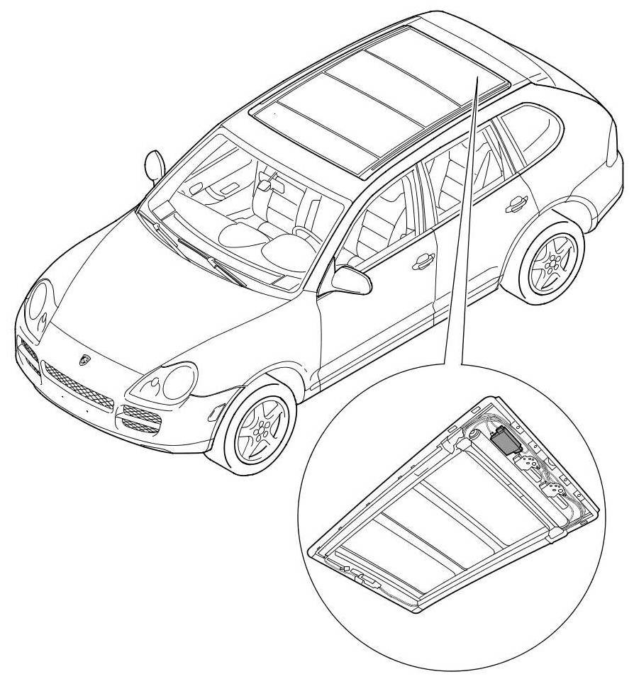Overview of control unit for roof assembly (panoramic roof)