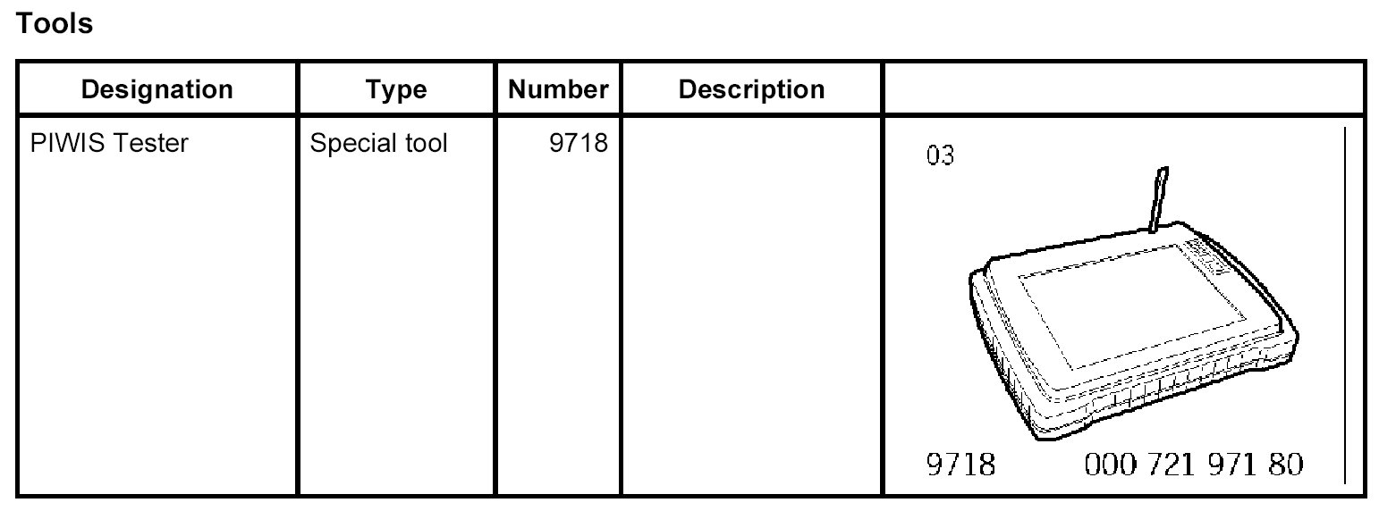 2. PIWIS Tester 9718 must be connected to the vehicle. Start the PIWIS Tester and switch on ignition.