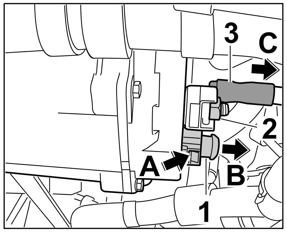 5. Press in connector -1- ( -arrow B- ) until it engages securely.
