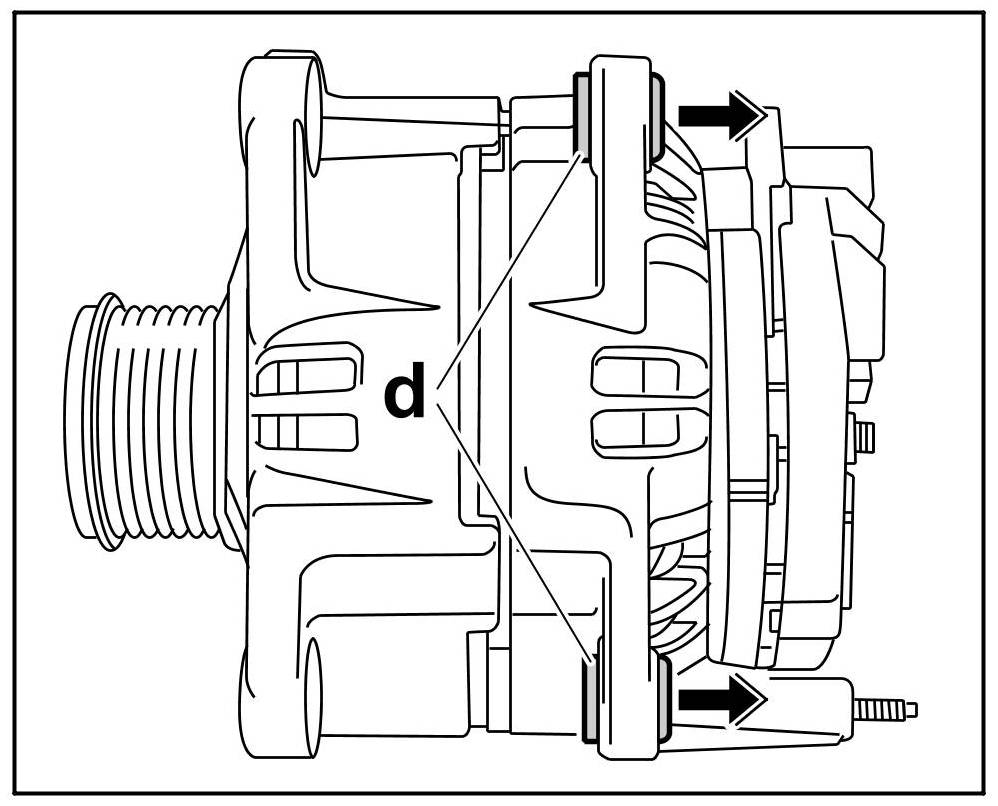 - Before installing the new generator, tap the threaded bushings -d- out by approx. 4 mm -arrows-.