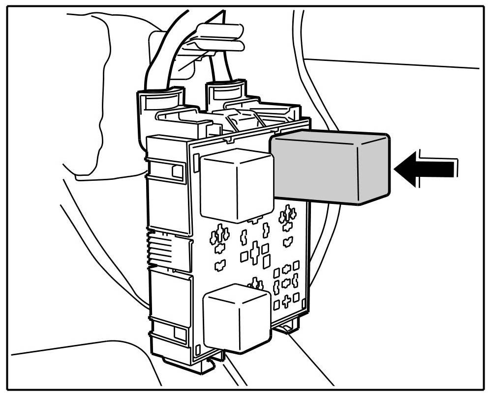 2. Press the relay carrier into the holder -Arrow A- until the locking tabs engage audibly.