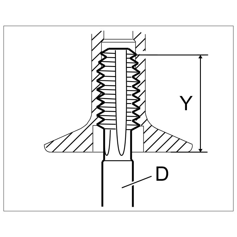 - While pressing in the base thread, a noticeably larger amount of force on the screw-in tool is required to form the internal thread. Pressing is finished when the screw-in tool can be turned further more easily.
