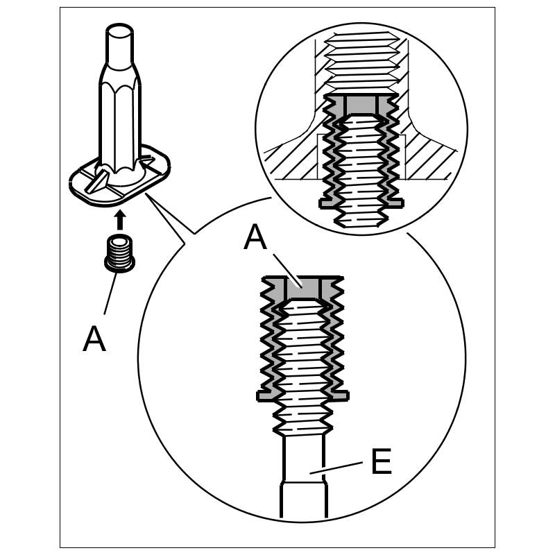 6.1. Form and press the threaded bush by turning further with the screw-in tool -E- in the base thread.