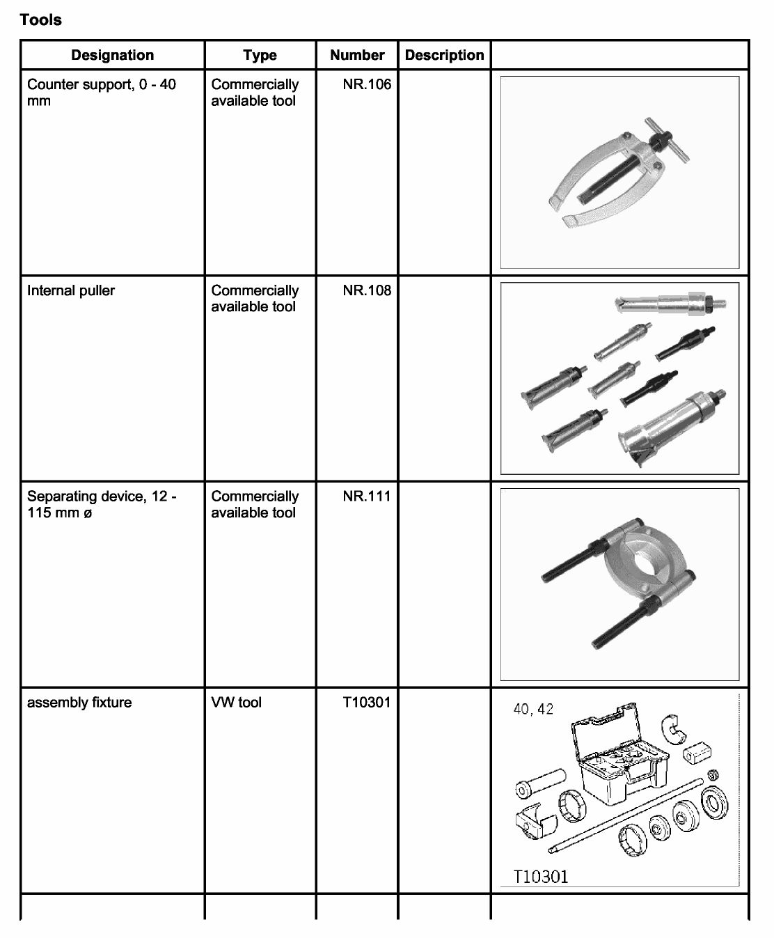 Tool overview for chassis subframe bearings