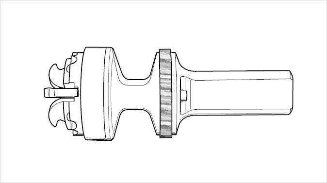 Modified quick-clamping holders -figure- (for fastening the measured-value pickups on the wheels) are used for the Cayenne. These measured-value pickups are positioned (with the claws first) centrally in the center of the rim and tautened clockwise in the rim with the straining ring.