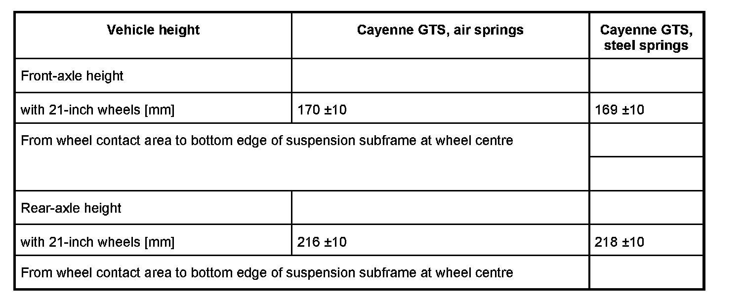 Wheel alignment values for Cayenne GTS with air springs and steel springs