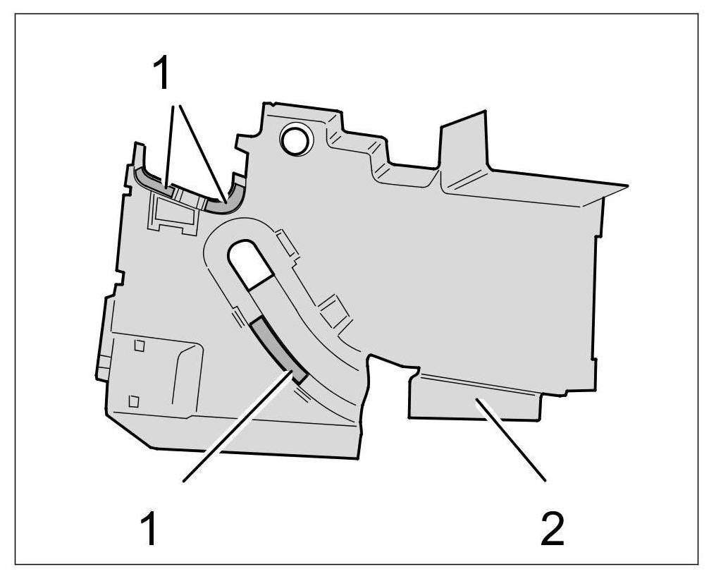 1.2. Stick felt strips -1- at the marked area on the sides of the mounting plate -2- at the left and right.
