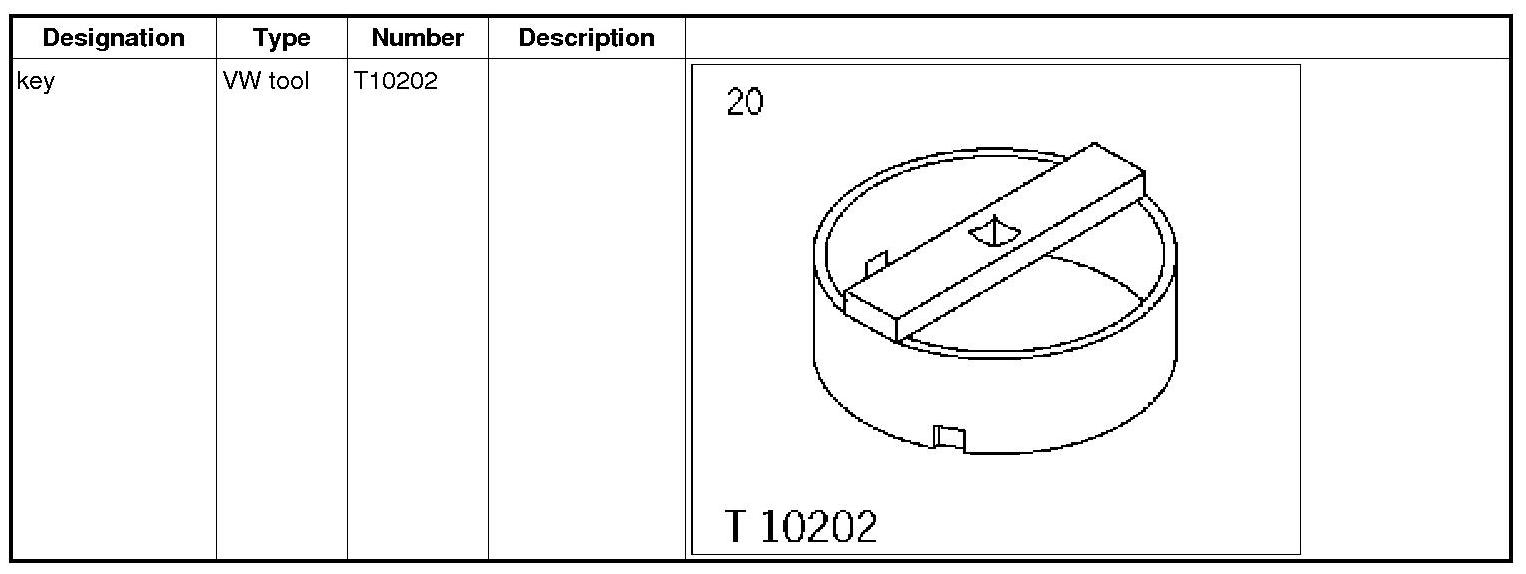 7. Open each cap using special key T10202 and lift up the connection unit (cap). => Special tool on cap
