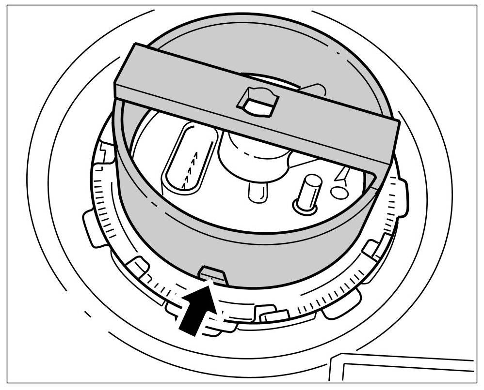 3. Fit connecting flange into the opening of the tank. When doing so, make sure that the plastic lug is pointing forwards.