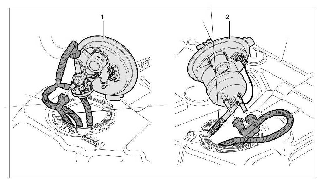 The effect of fuel and various tolerances means that the left fuel level sensor can become jammed under fuel lines or the sensor's electric cable. The instrument cluster would then display an incorrect fuel level.