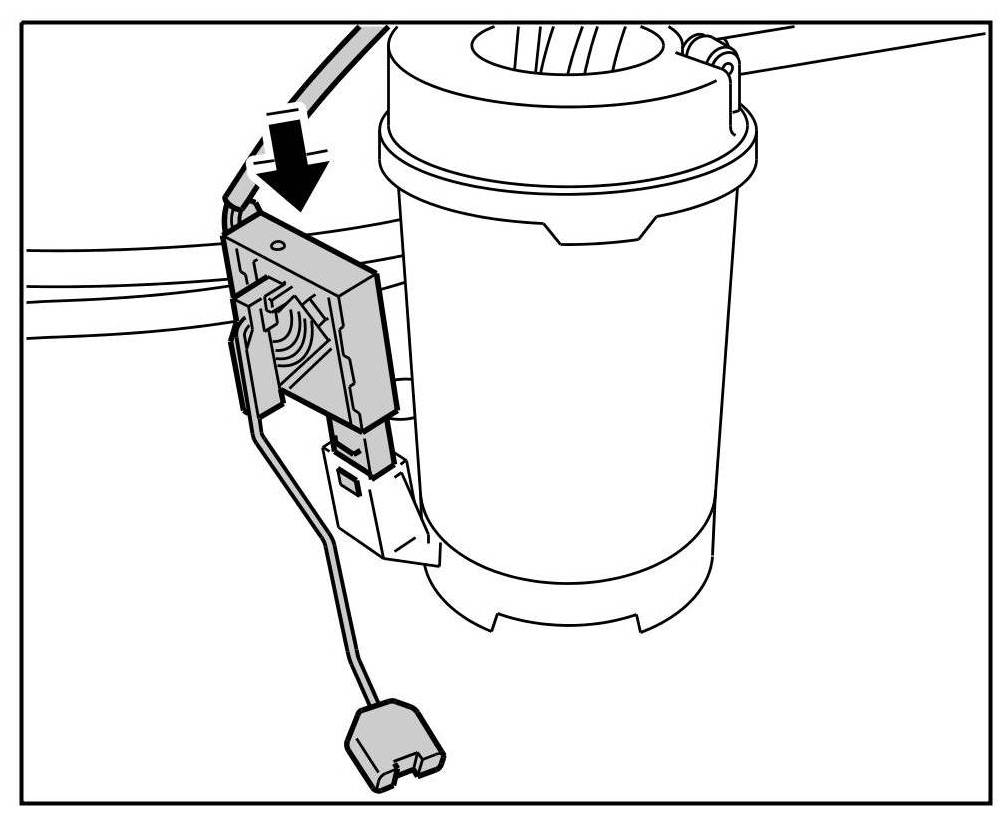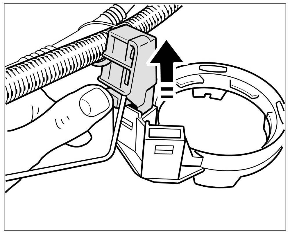 2. Press the retainer spring on the sensor by hand while at the same time pulling the sensor up. => Loosening fuel level sensor