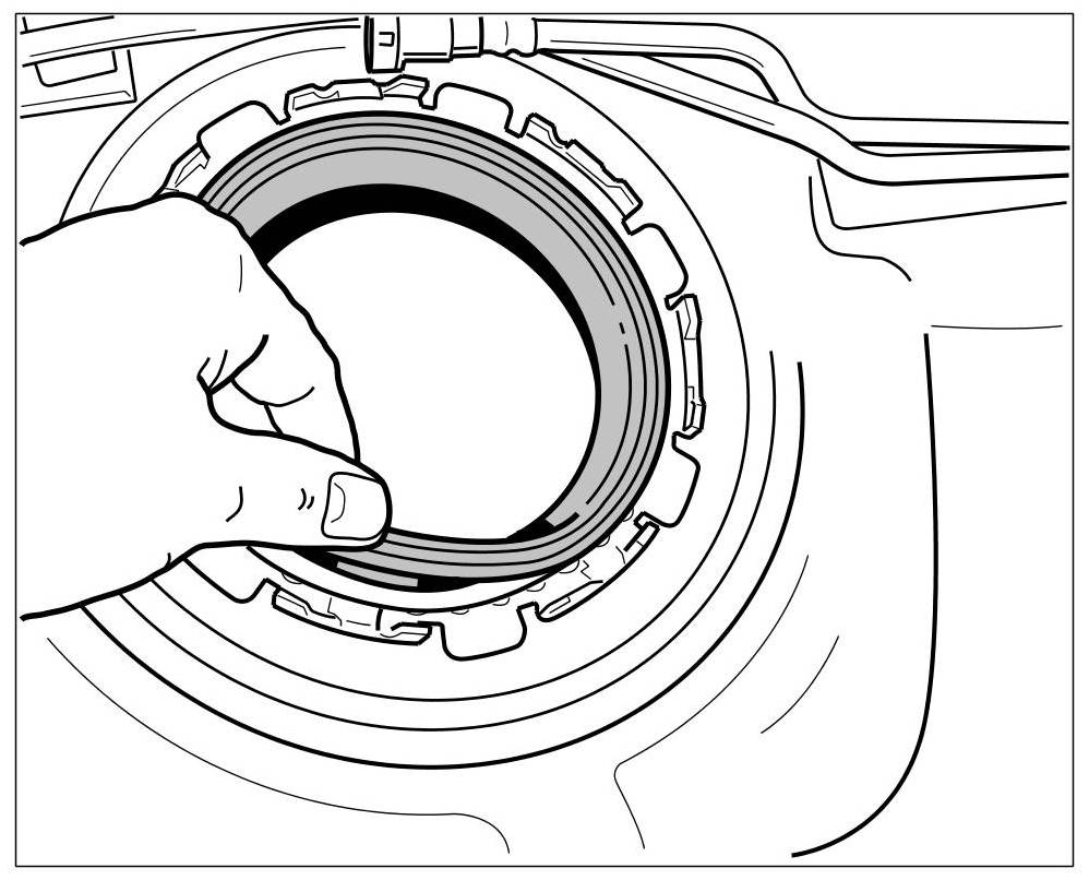 1. Close the tank. To do this, fit the sheetmetal ring and tighten using special key T10202. => Tightening torque: 140 Nm (104 ftlb.)