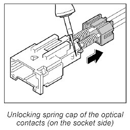 When exchanging the LWL, the optical contacts from the plug connection must be removed.