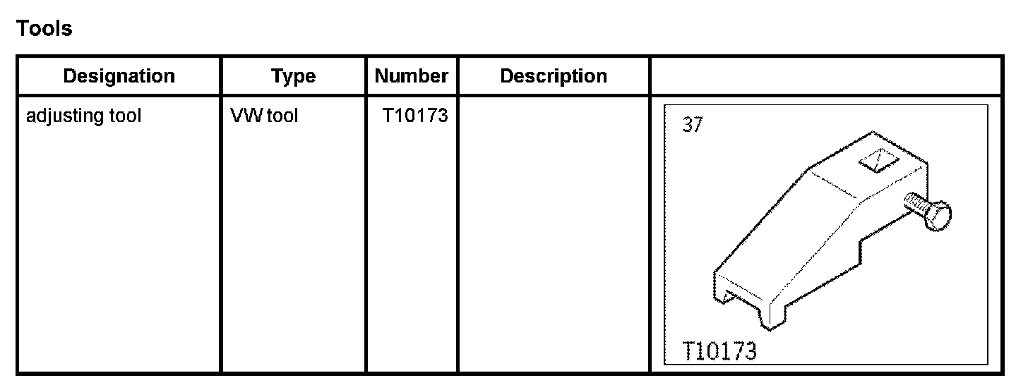 6. Position special tool adjusting tool T10173 on shaft and fix with screw -arrow-.
