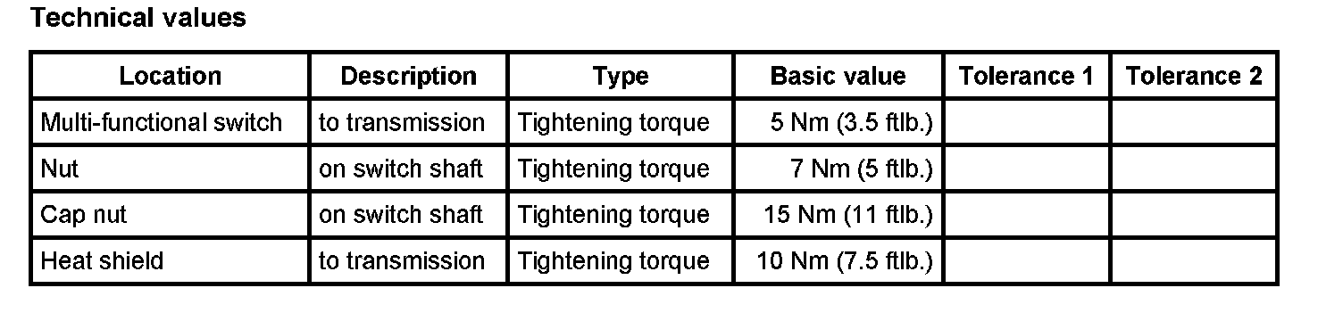 8. Install cap nut, cap, nut with tab washer and rubber washer on the multi-functional switch. -> Tightening torque: 7 Nm (5 ftlb.) -> Tightening torque: 15 Nm (11 ftlb.)