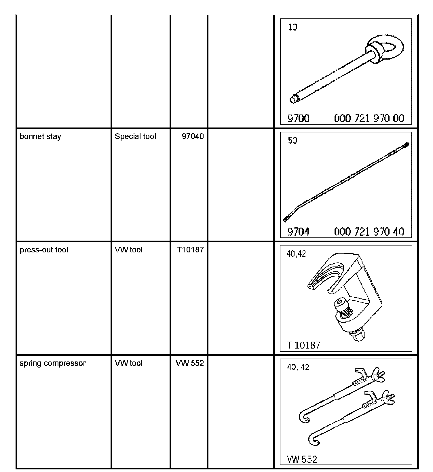 1. Open the engine compartment lid and secure with the bonnet stay 97040.