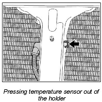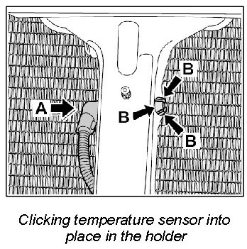 2. Push in temperature sensor -A- until you feel the locking tabs -Arrows B- engage.