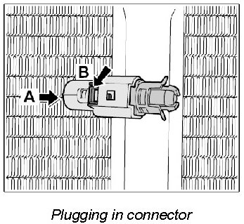 1. Plug in the temperature sensor connector -Arrow A- until the locking tab -B- is felt to engage.