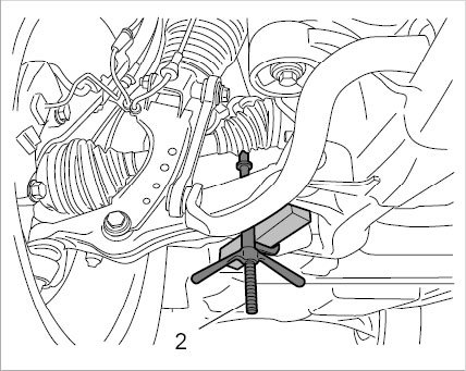 2. Loosen the suspension subframe bearings on both sides. Loosen the spindle carefully until there is sufficient clearance for using the press-out tool.