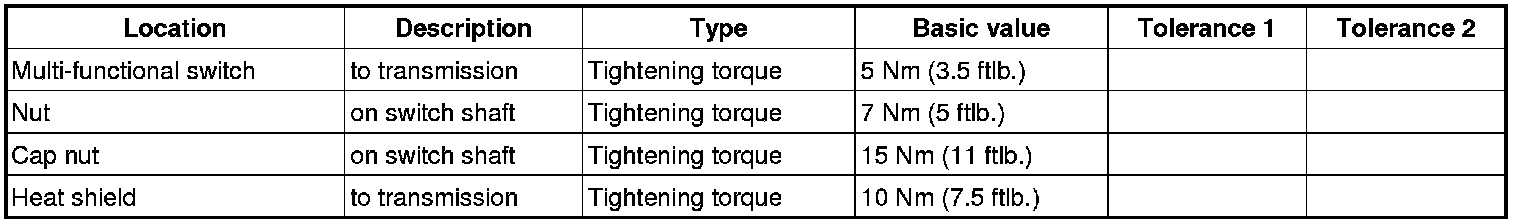 8. Install cap nut, cap, nut with tab washer and rubber washer on the multi-functional switch. => Tightening torque: 7 Nm (5 ftlb.) => Tightening torque: 15 Nm (11 ftlb.)