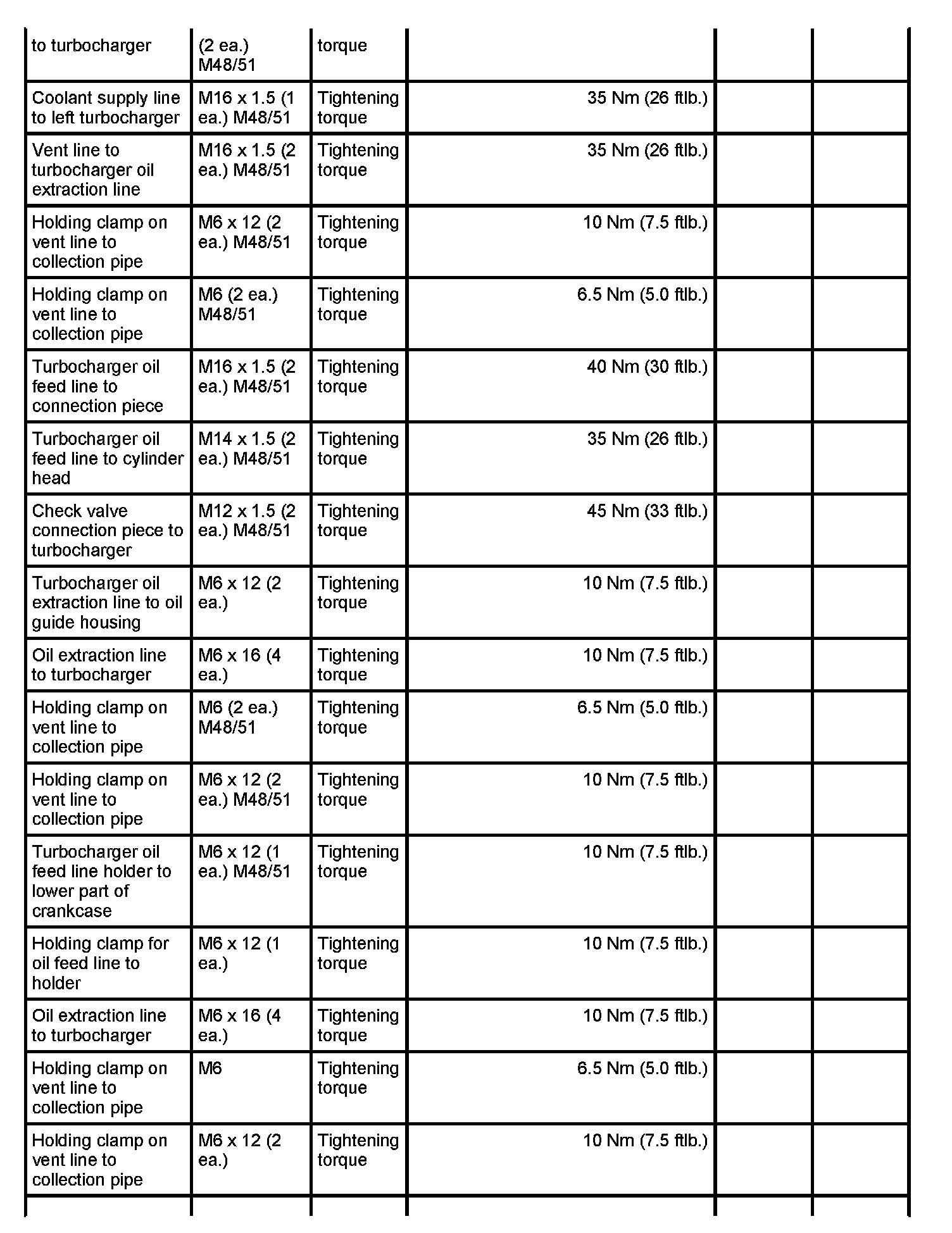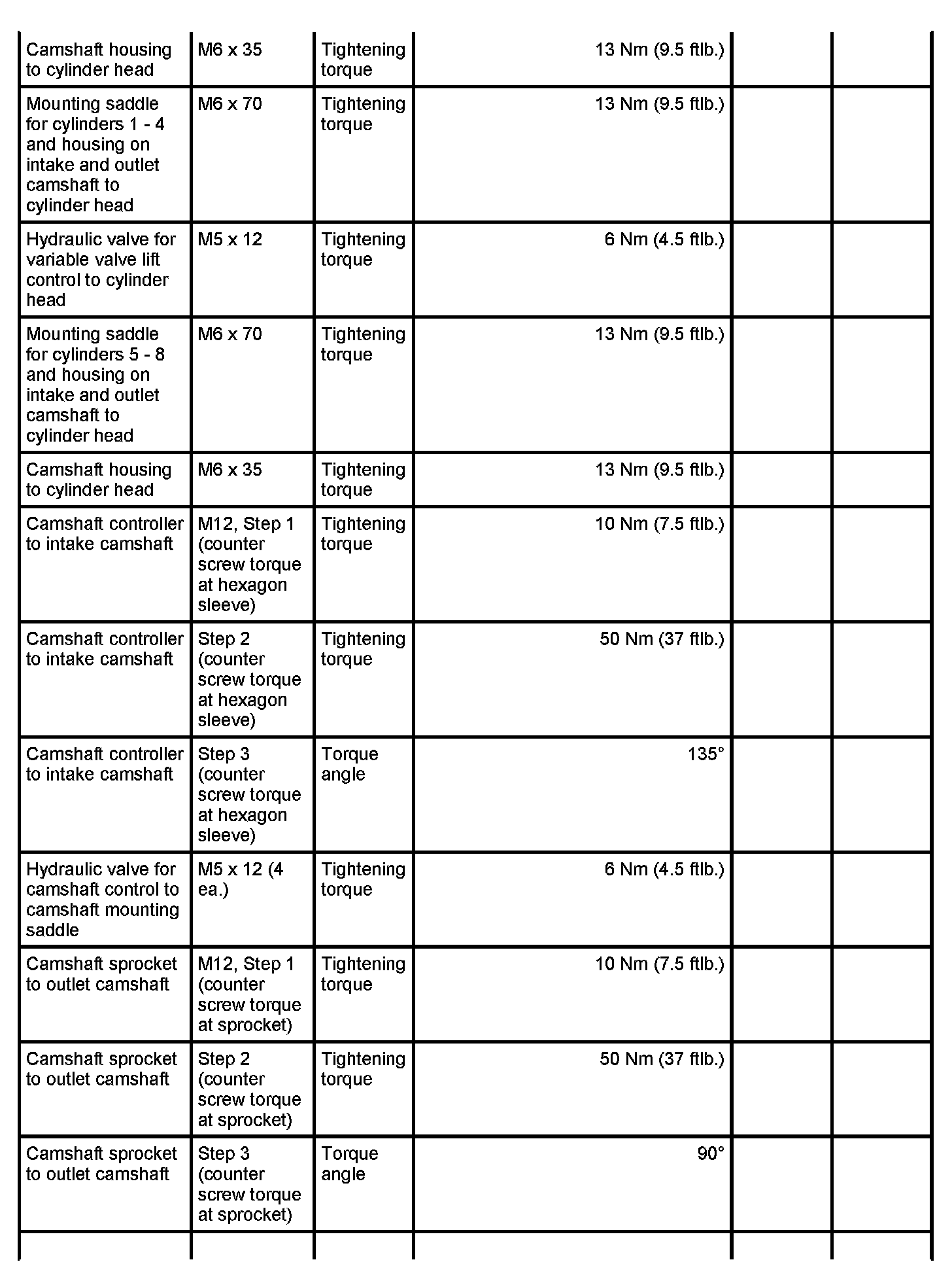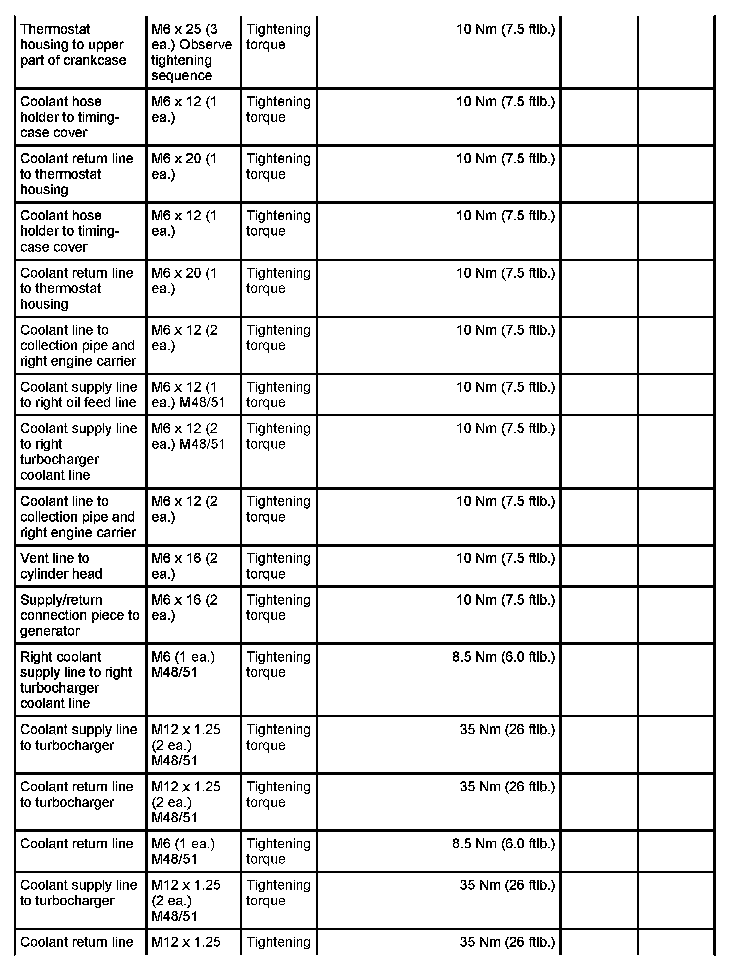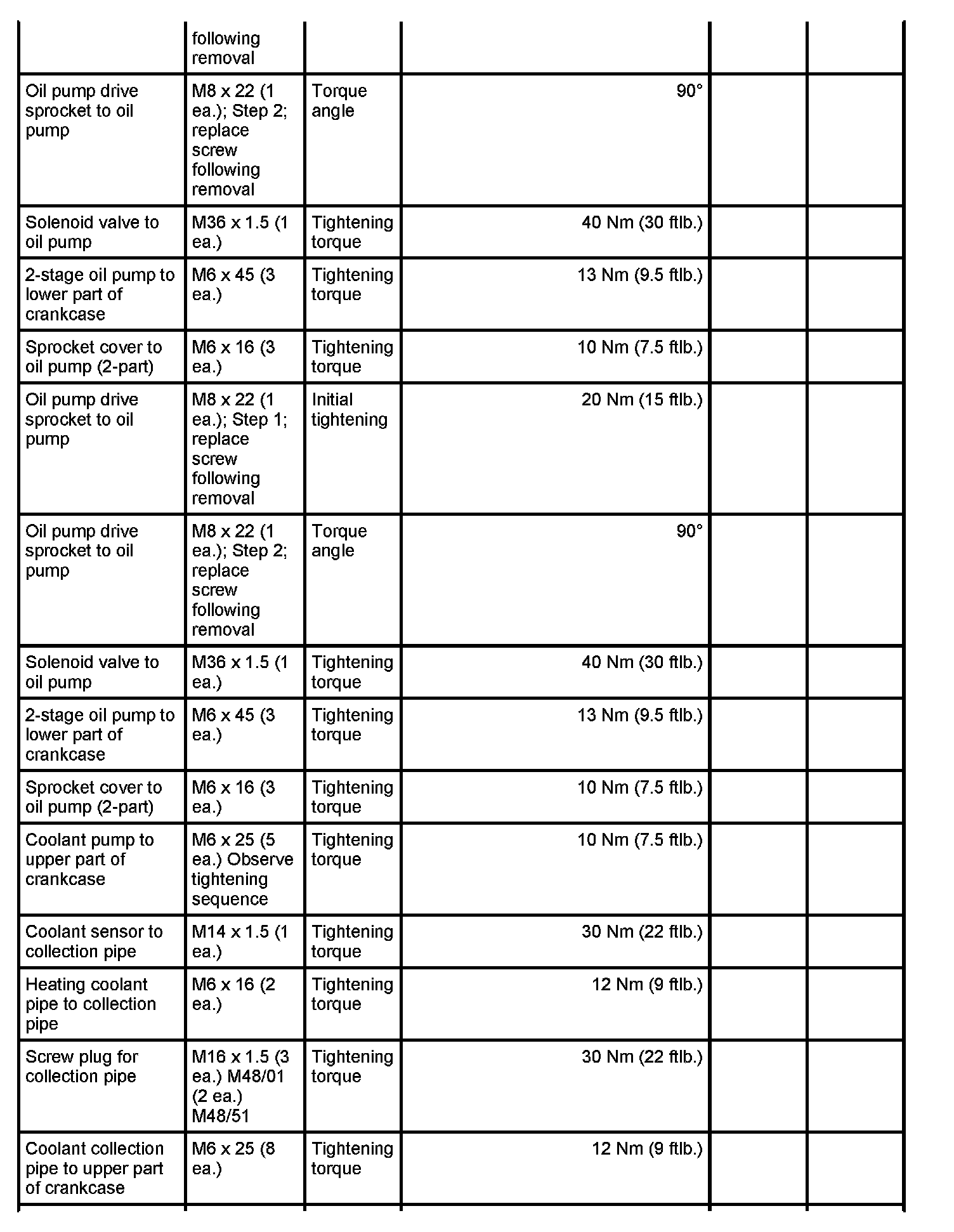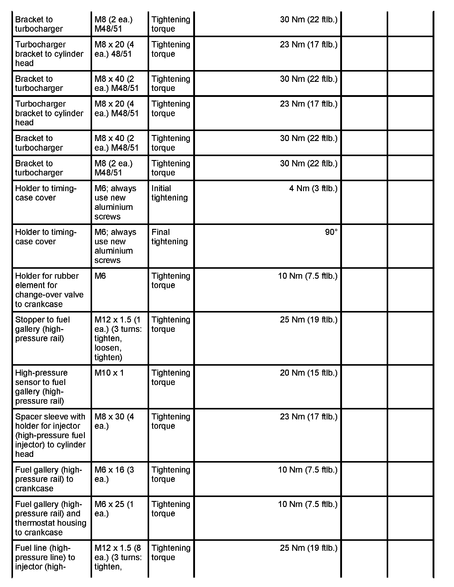 7 - Aluminium screw, M8 x 70; (cross bolt connection); always use new aluminium screws; observe tightening sequence as for steel screws - Initial tightening: 10 Nm (7.5 ftlb.) and - Final tightening: 90 degrees
