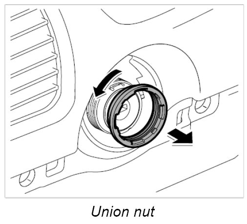 3. Turn union nut using a narrow plastic spatula, for example, or using the special wrench T10152 tool and unscrew the ring from the ignition starter switch.